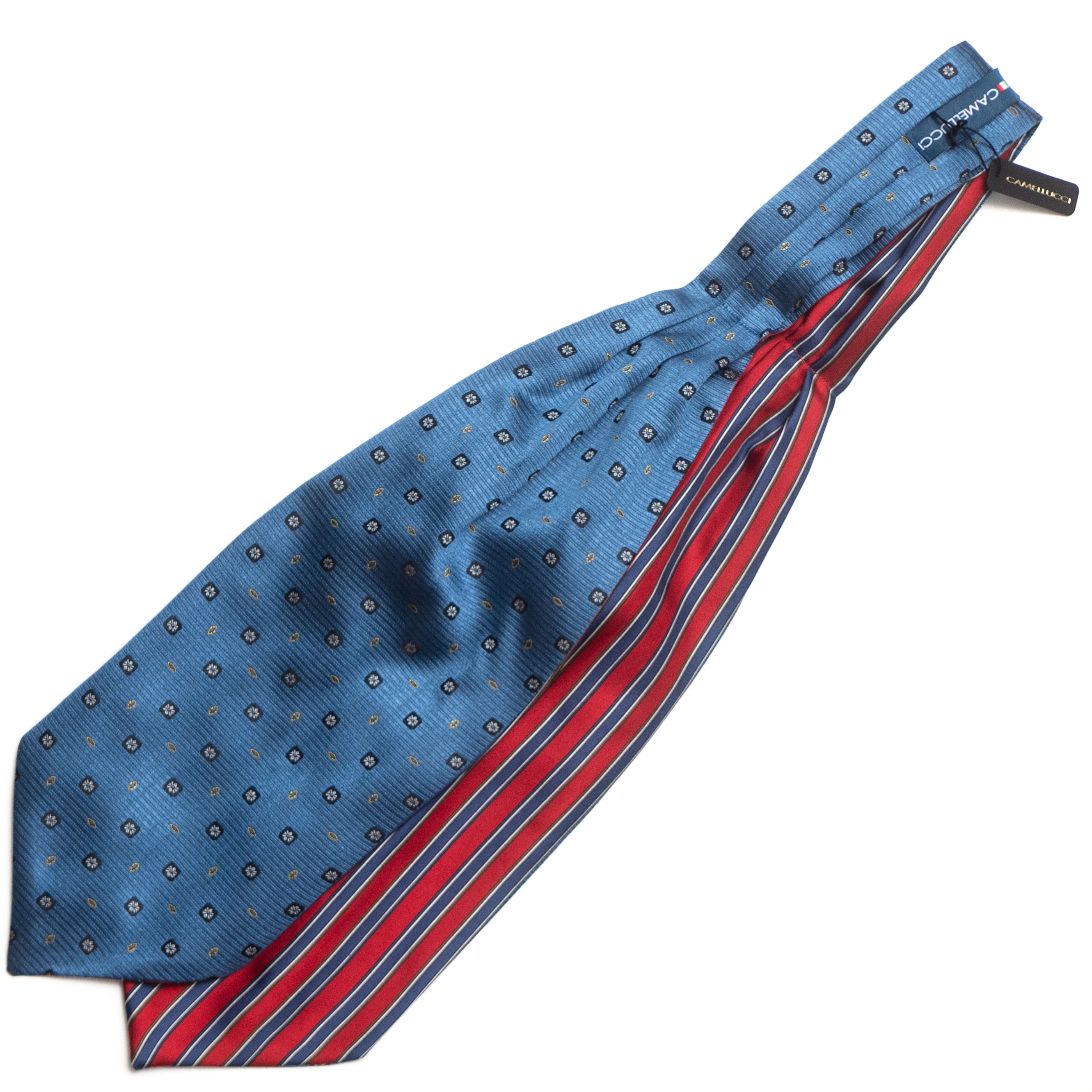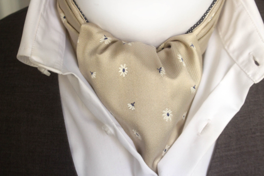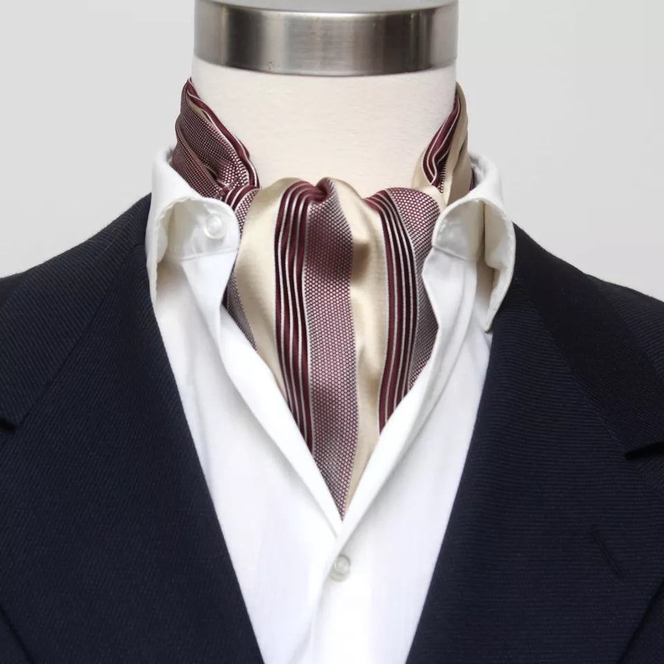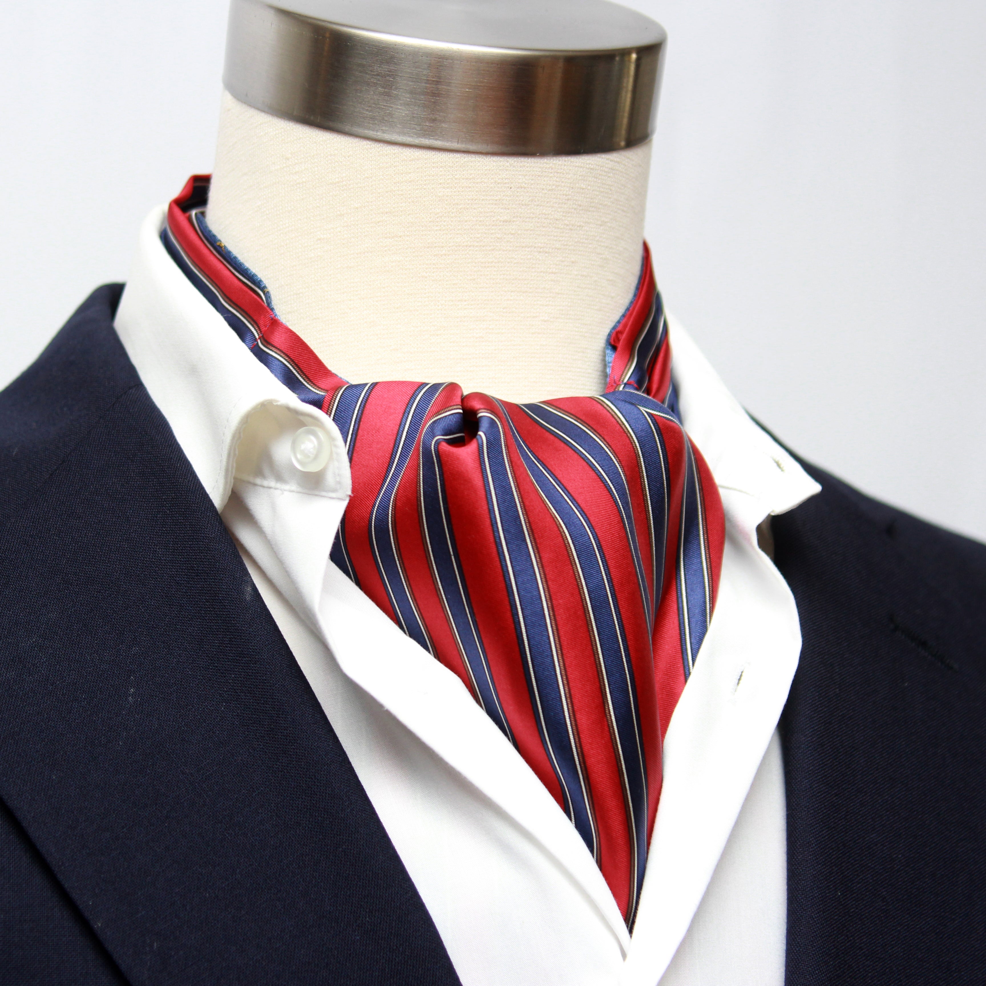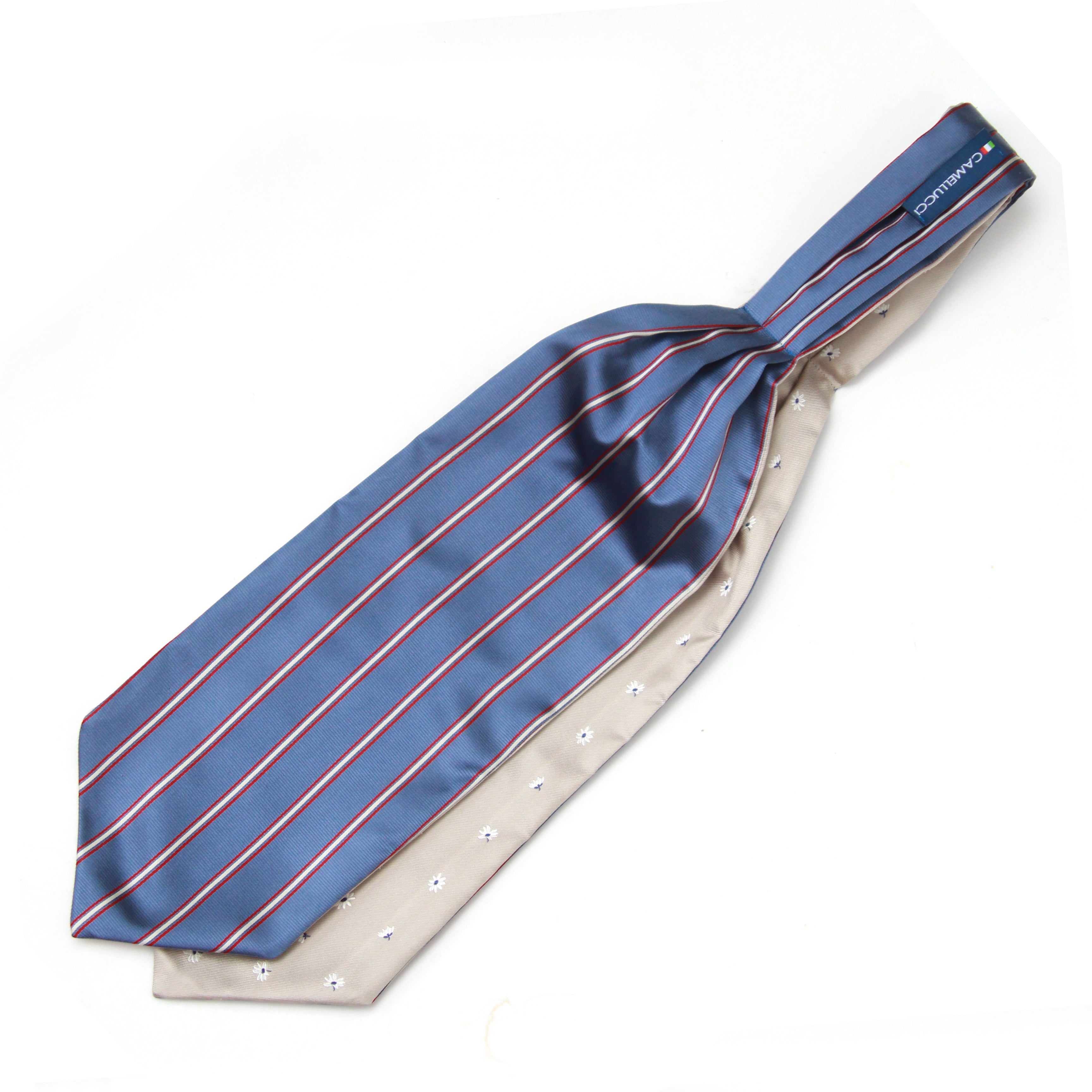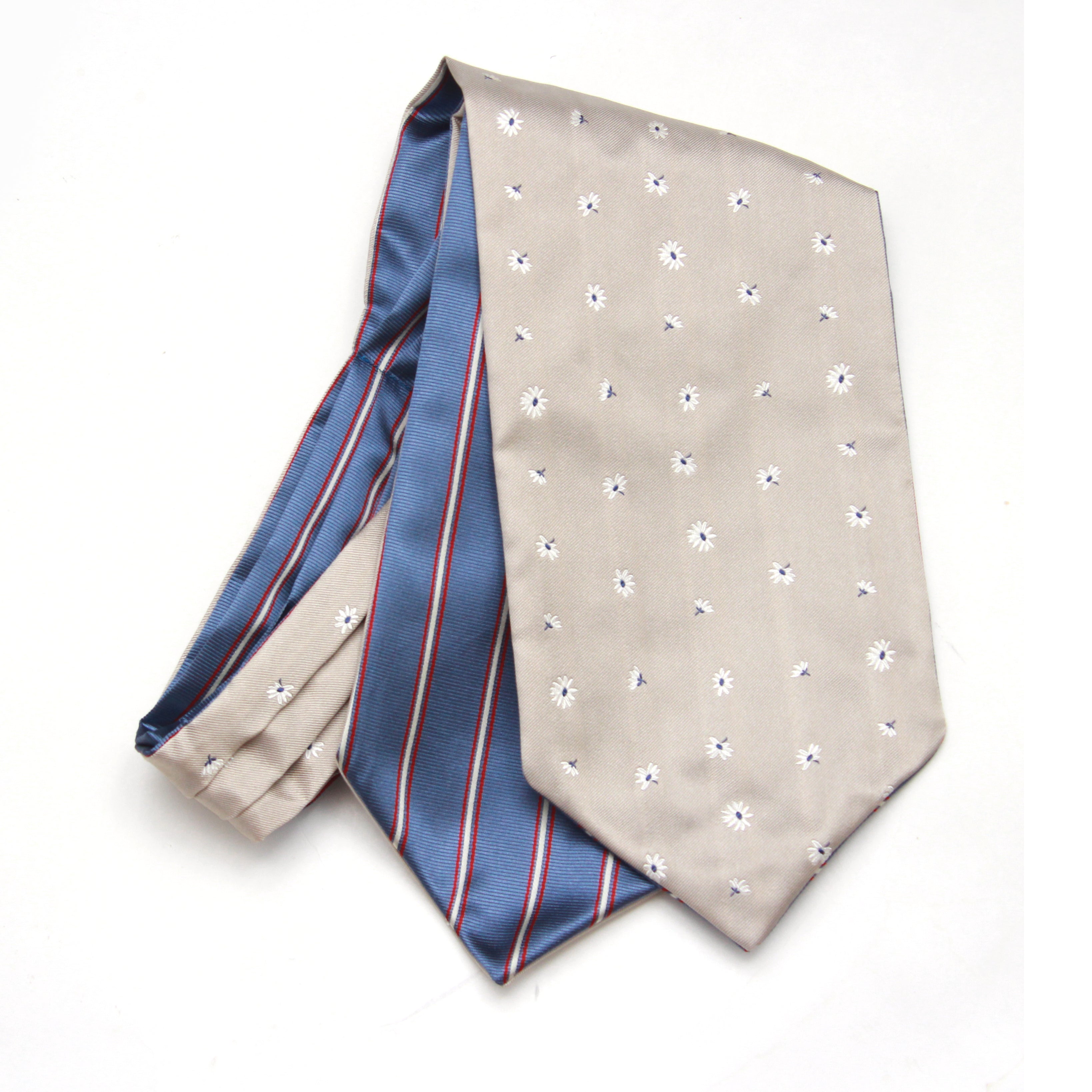 Navy Stripe Beige Floral Reversible Silk Ascot Navy Stripe Beige Floral Reversible Silk Ascot
