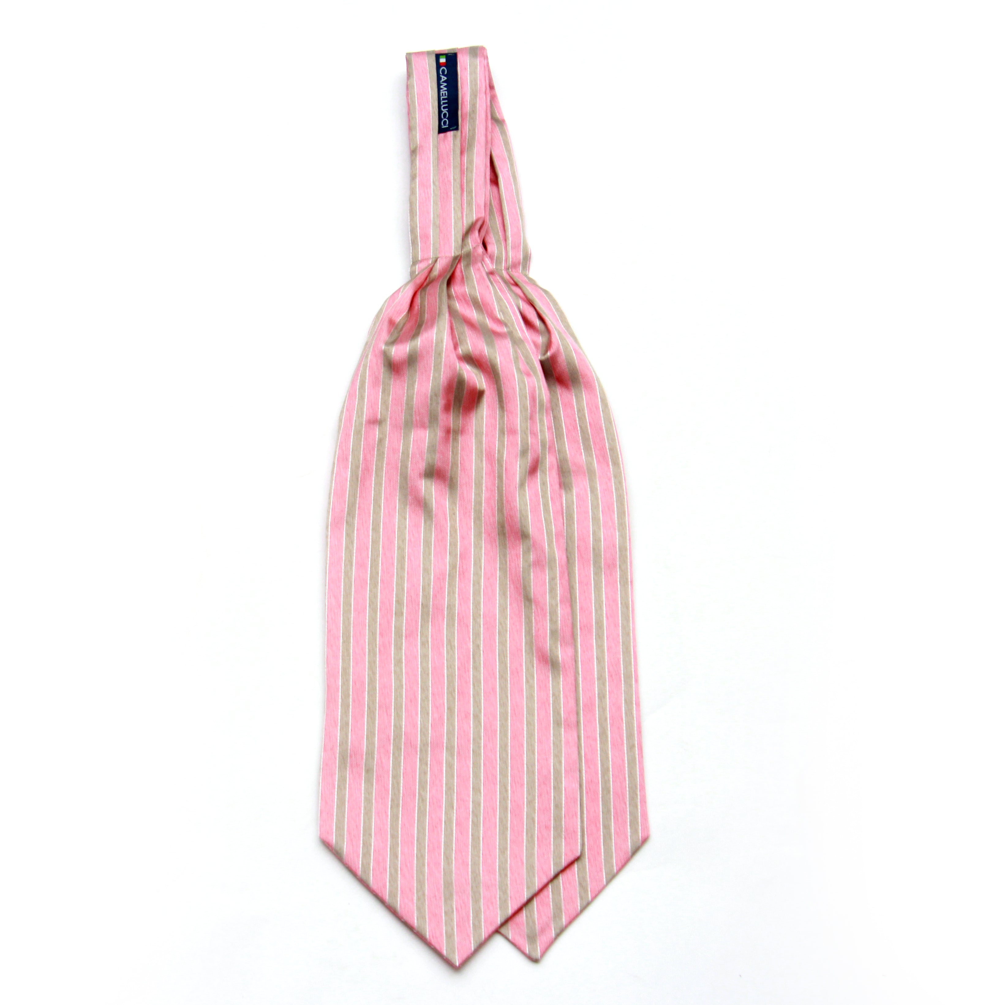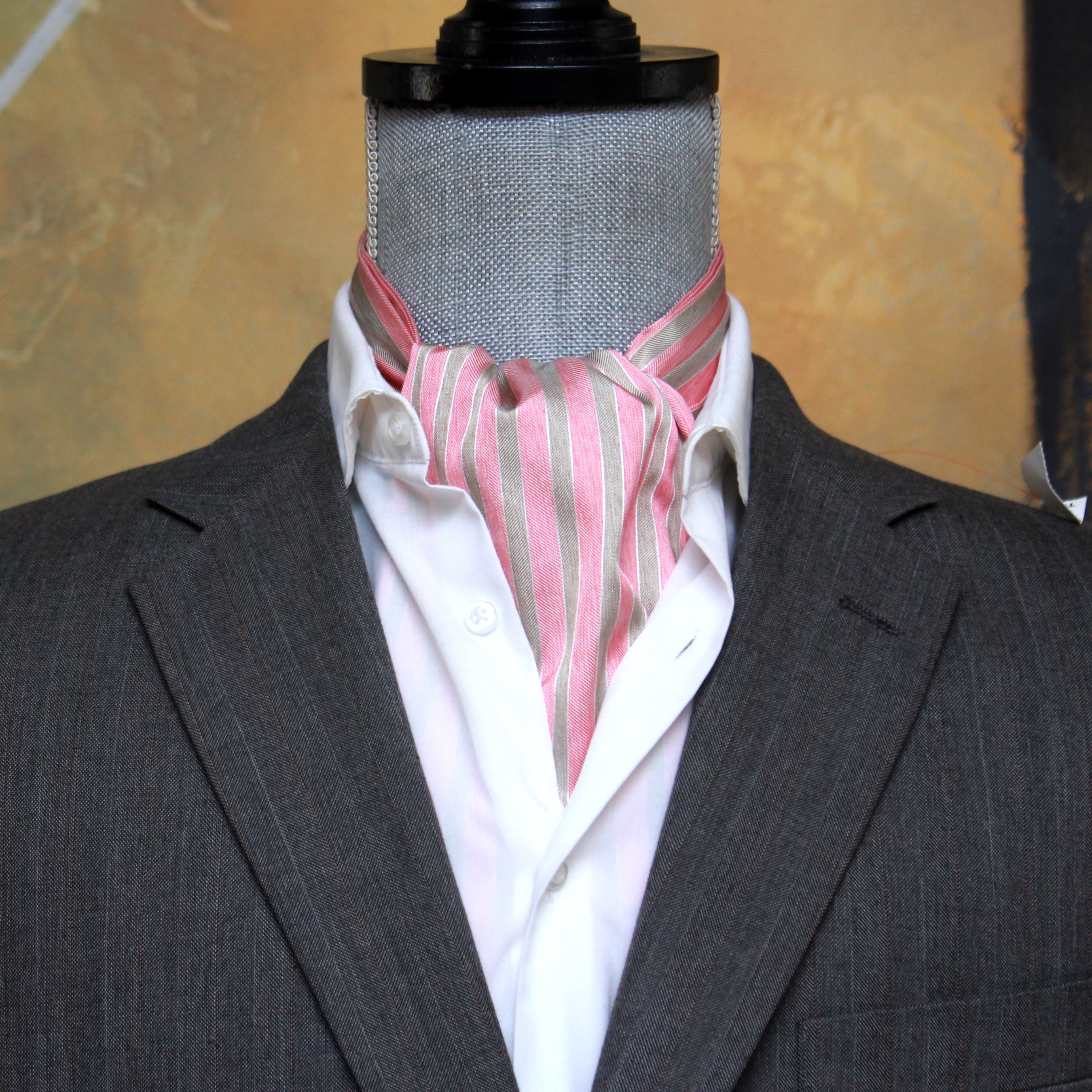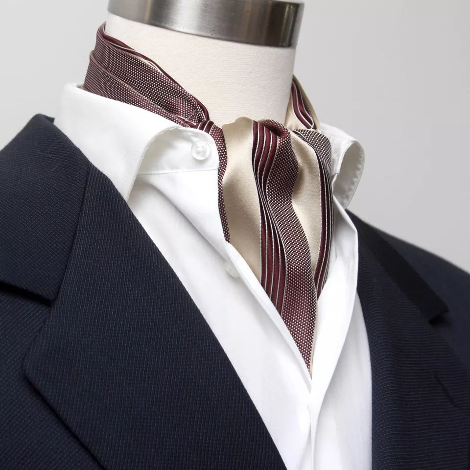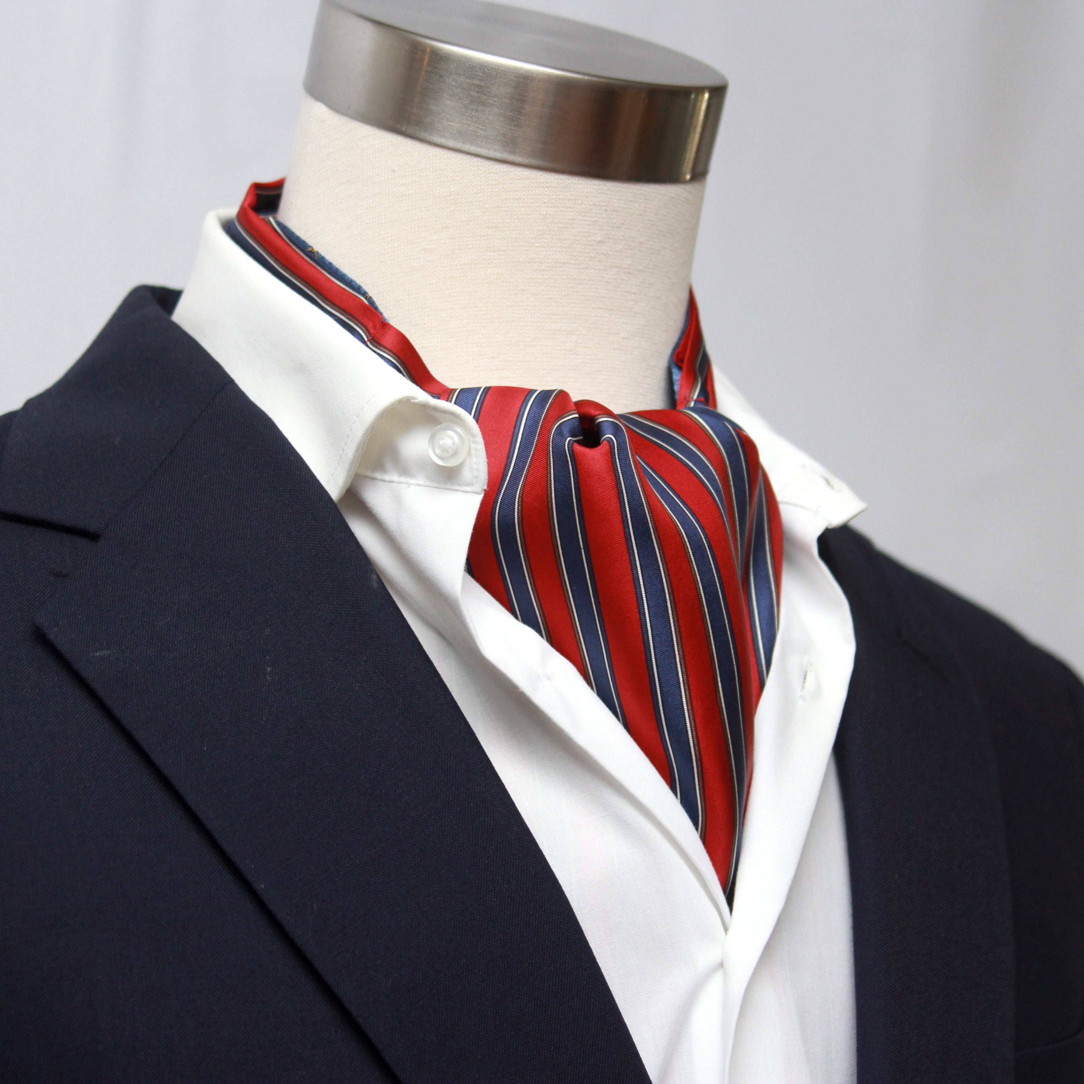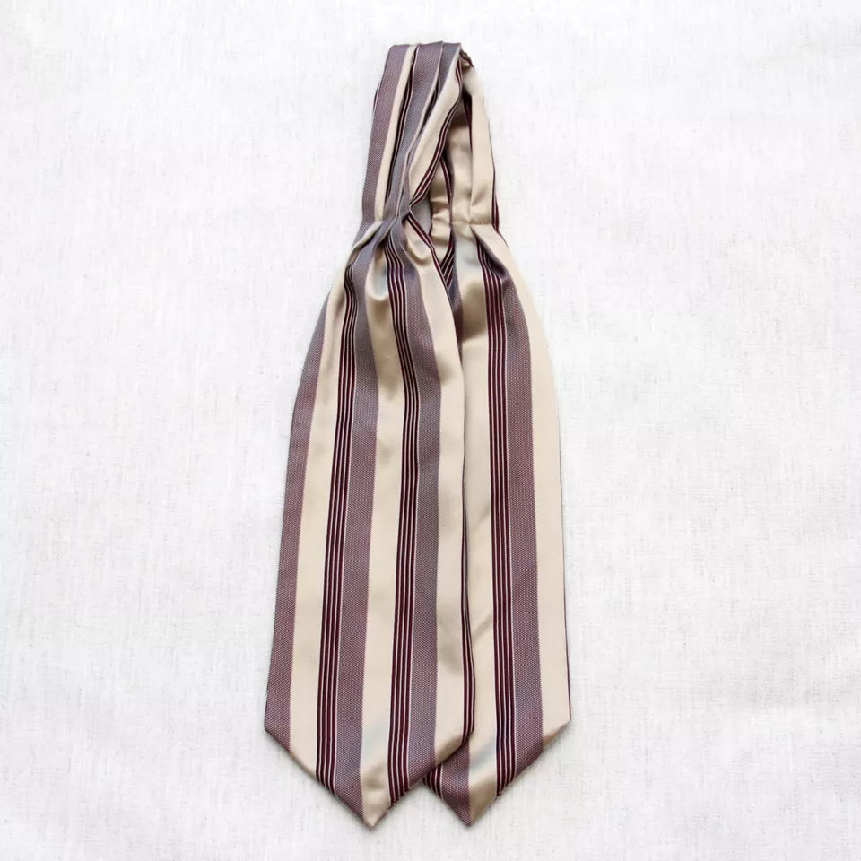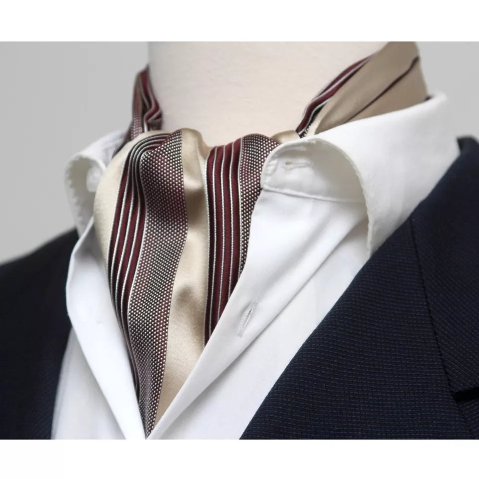 Navy Stripe Beige Floral Reversible Silk Ascot Navy Stripe Beige Floral Reversible Silk Ascot