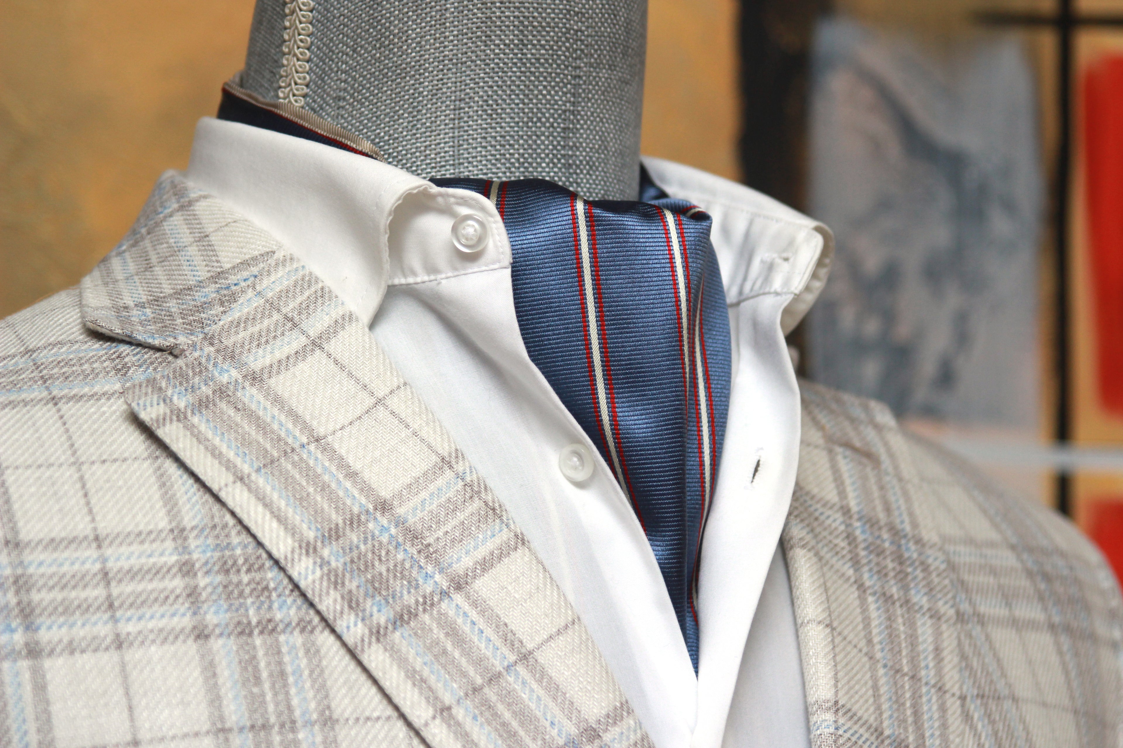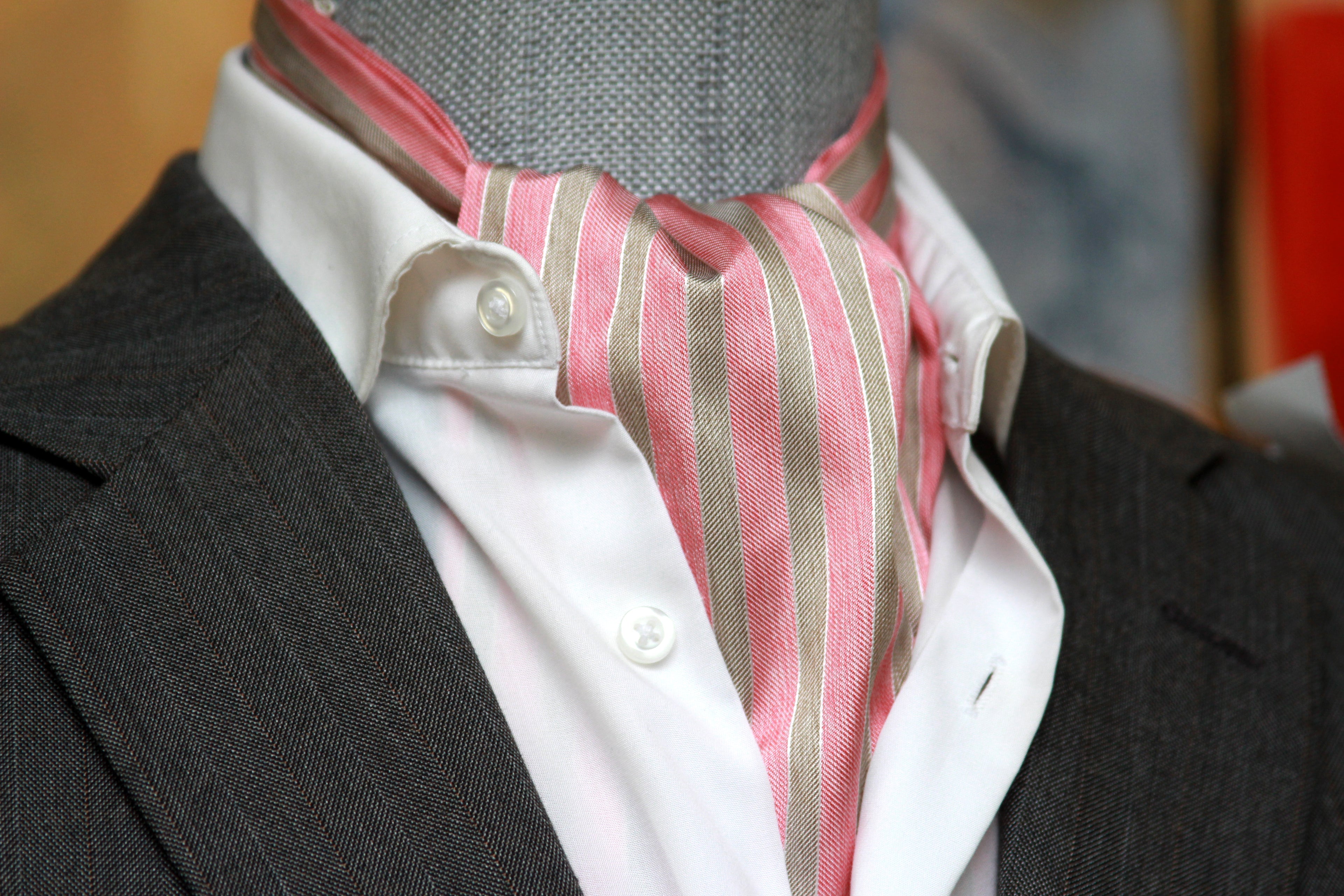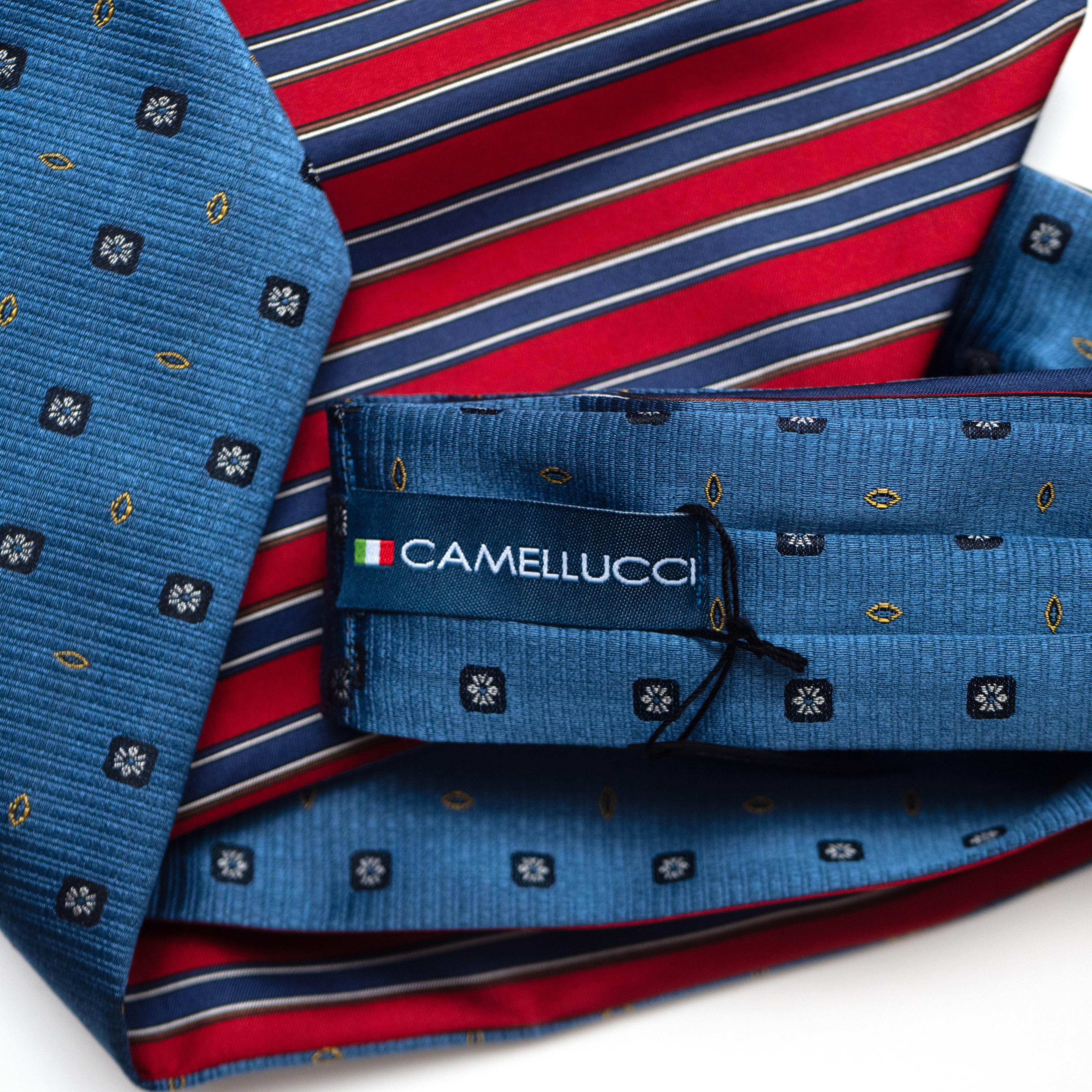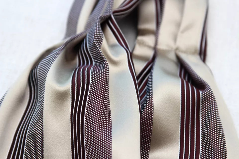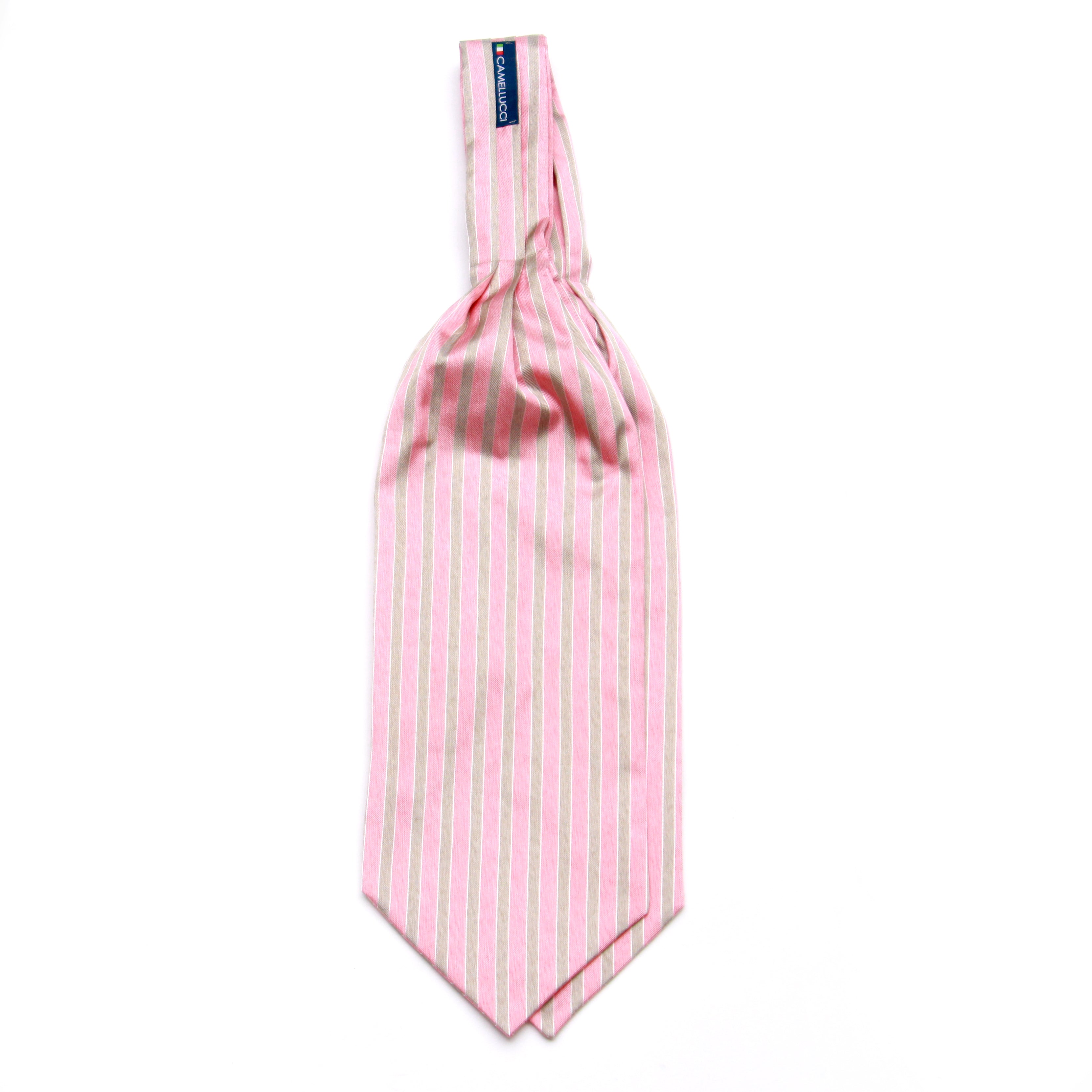 Navy Stripe Beige Floral Reversible Silk Ascot Navy Stripe Beige Floral Reversible Silk Ascot