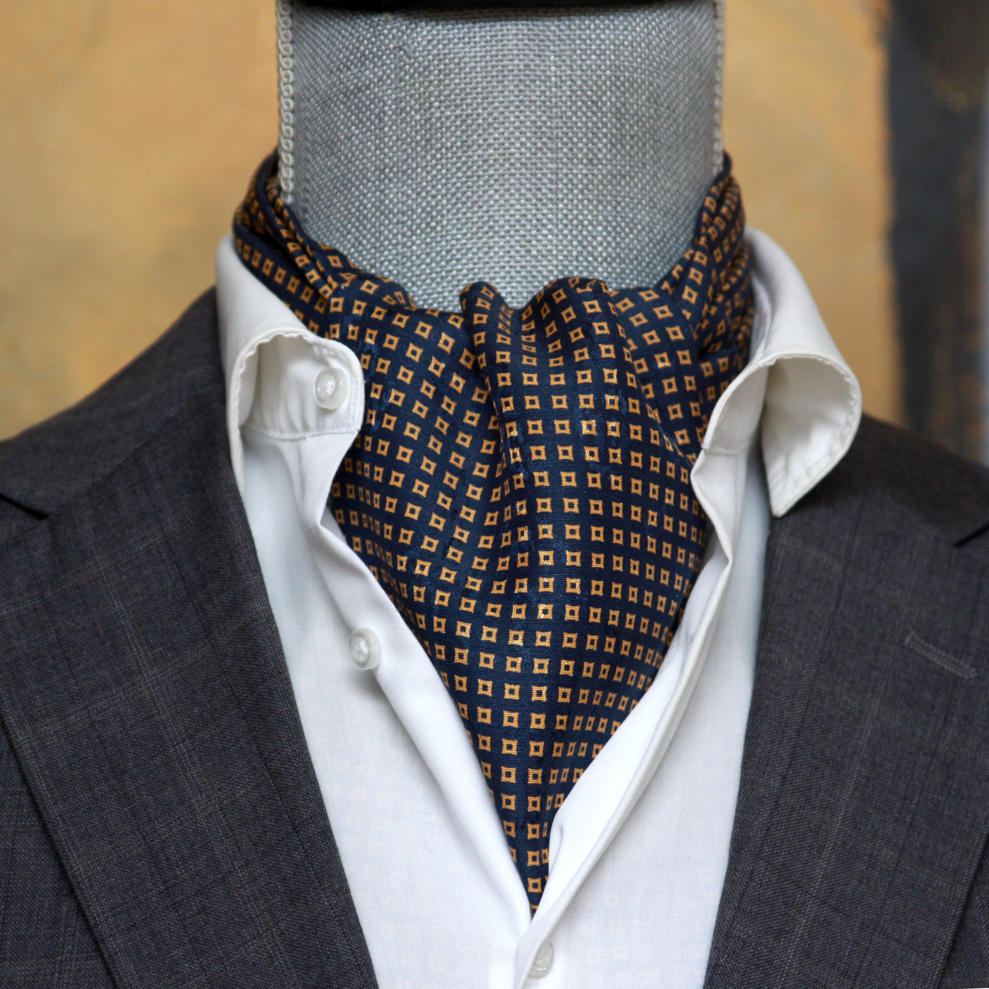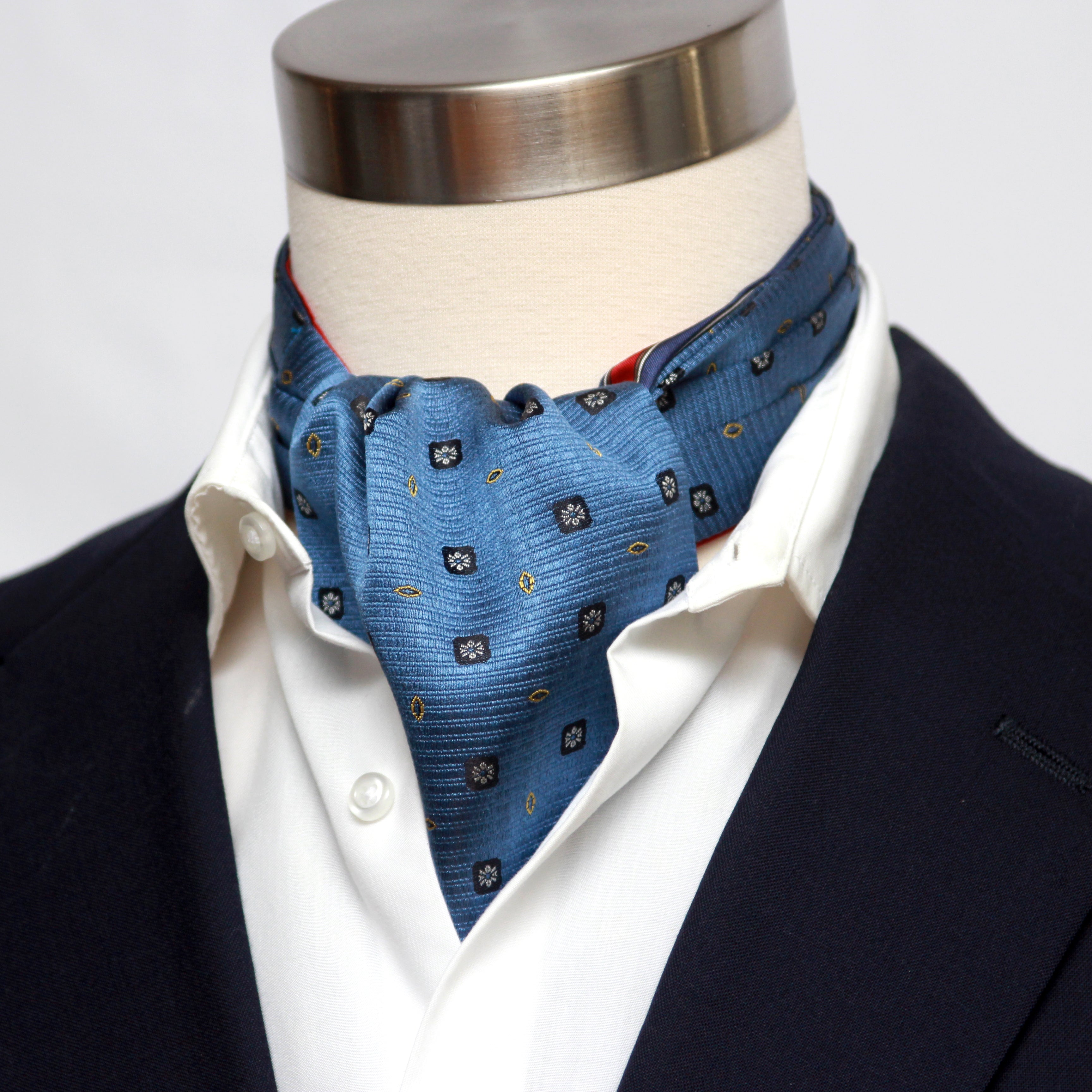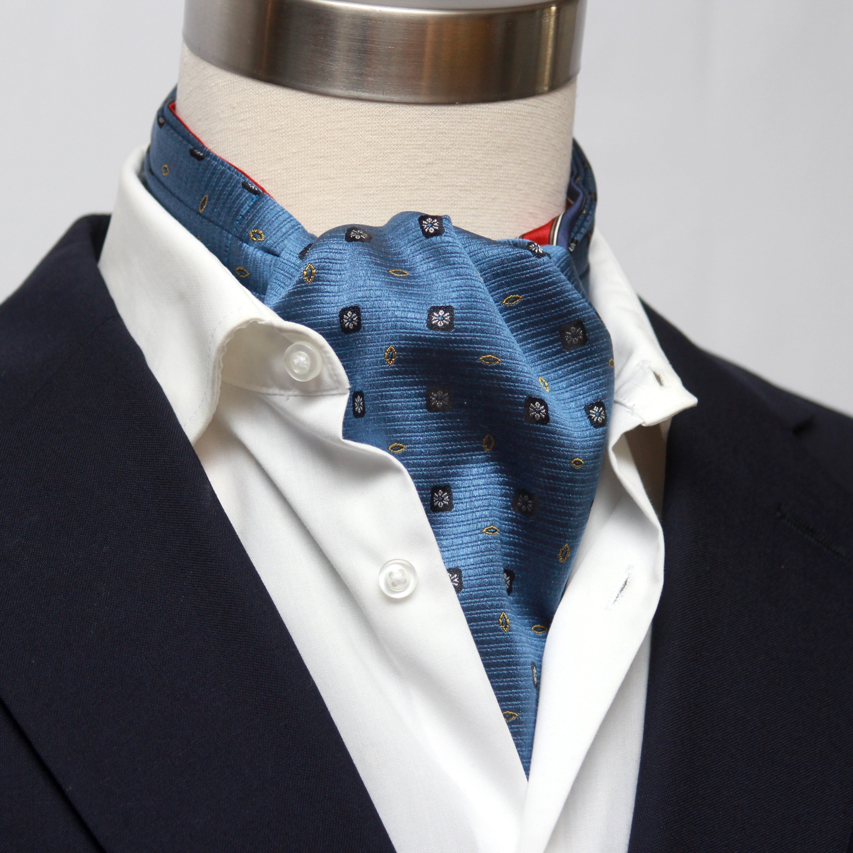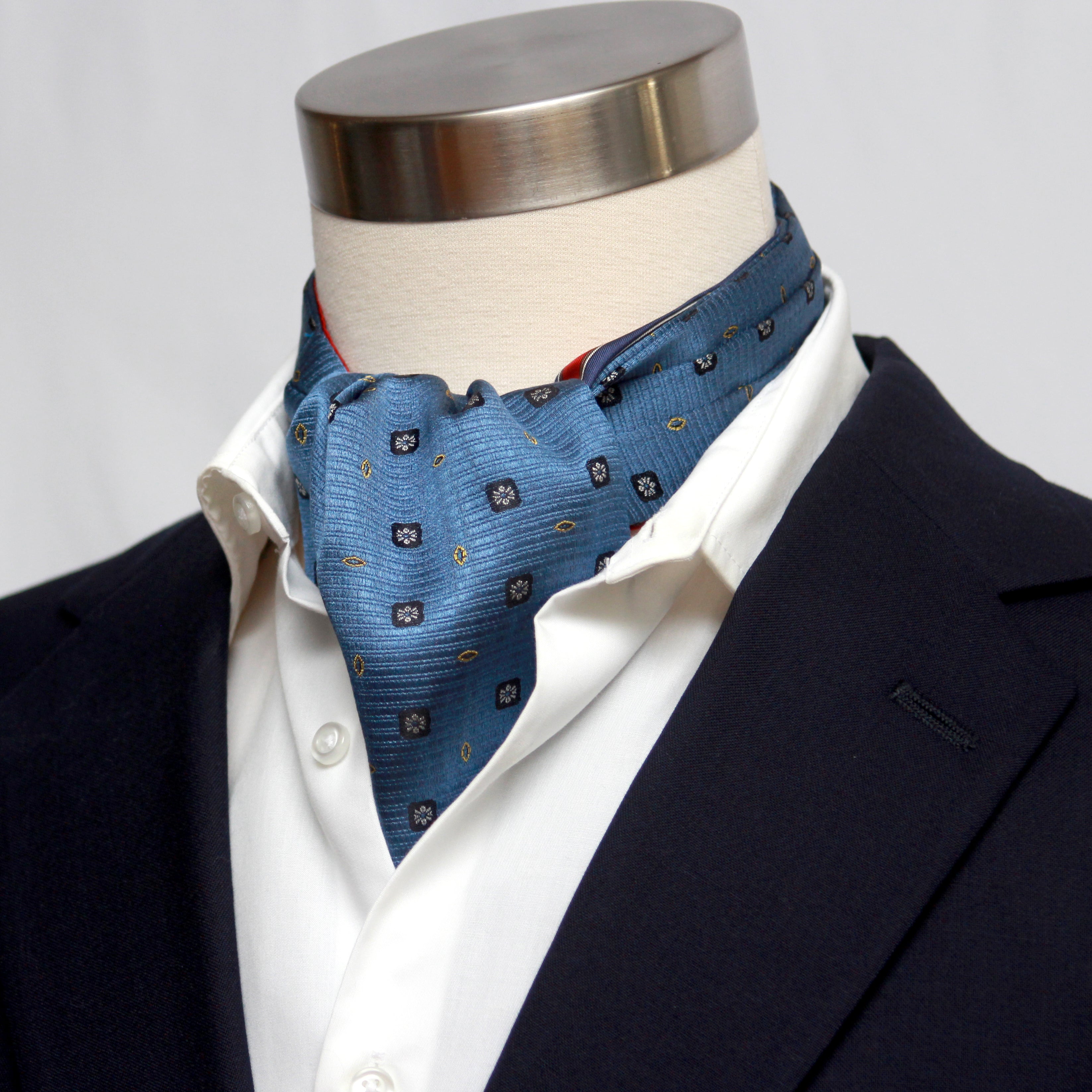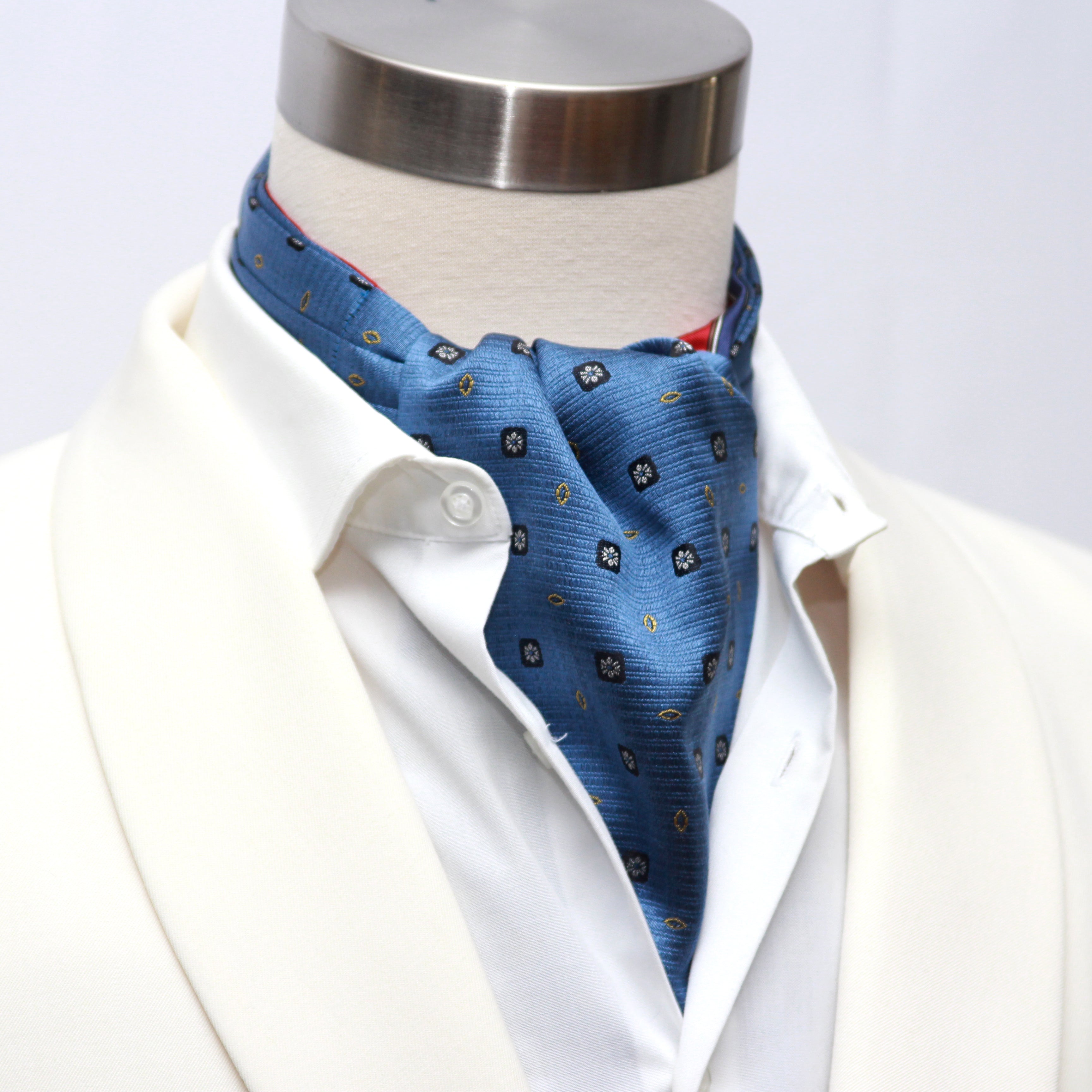 Men's Ascot Cravat LUXURY Blue Ornament Block Men's Ascot Cravat LUXURY Blue Ornament Block