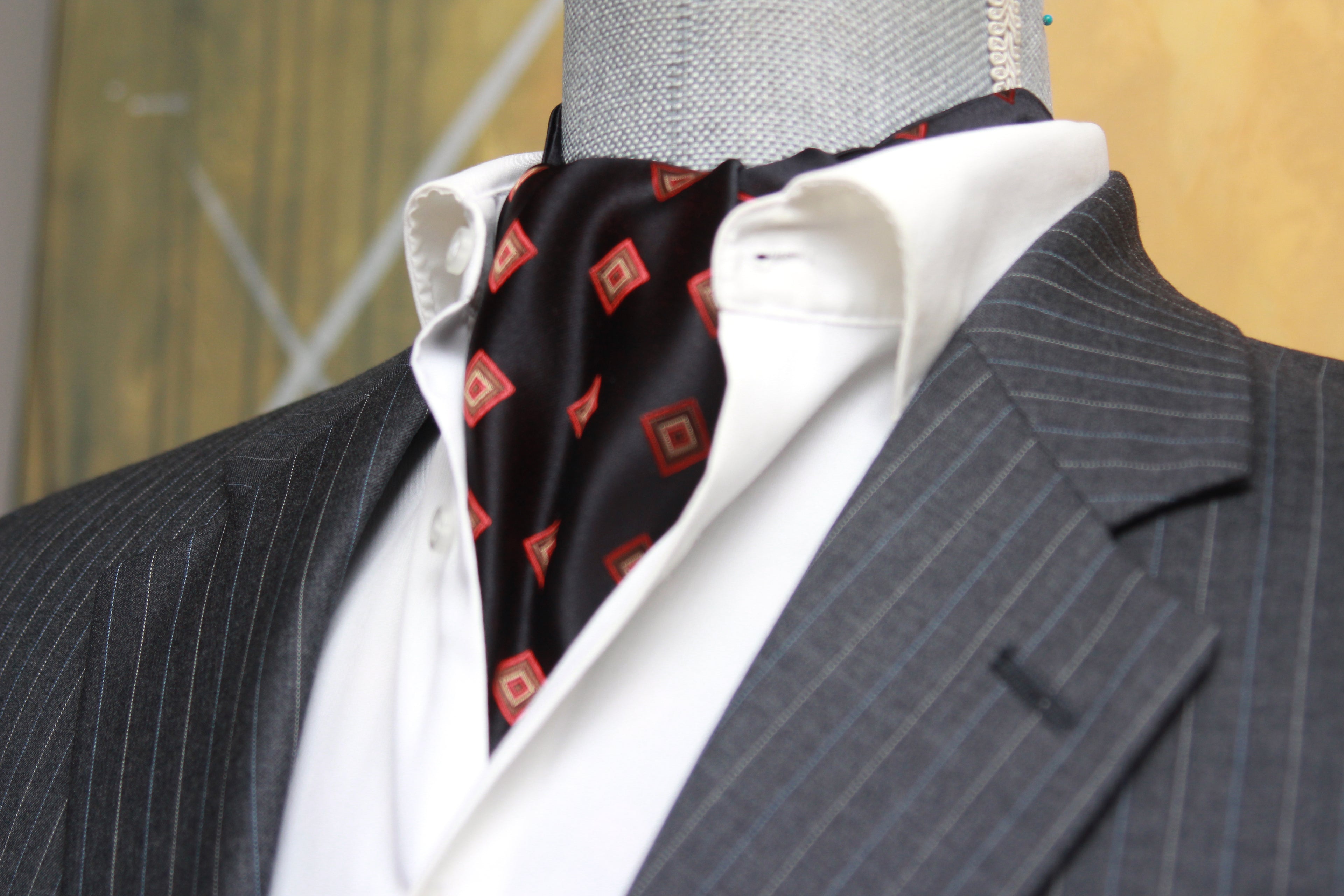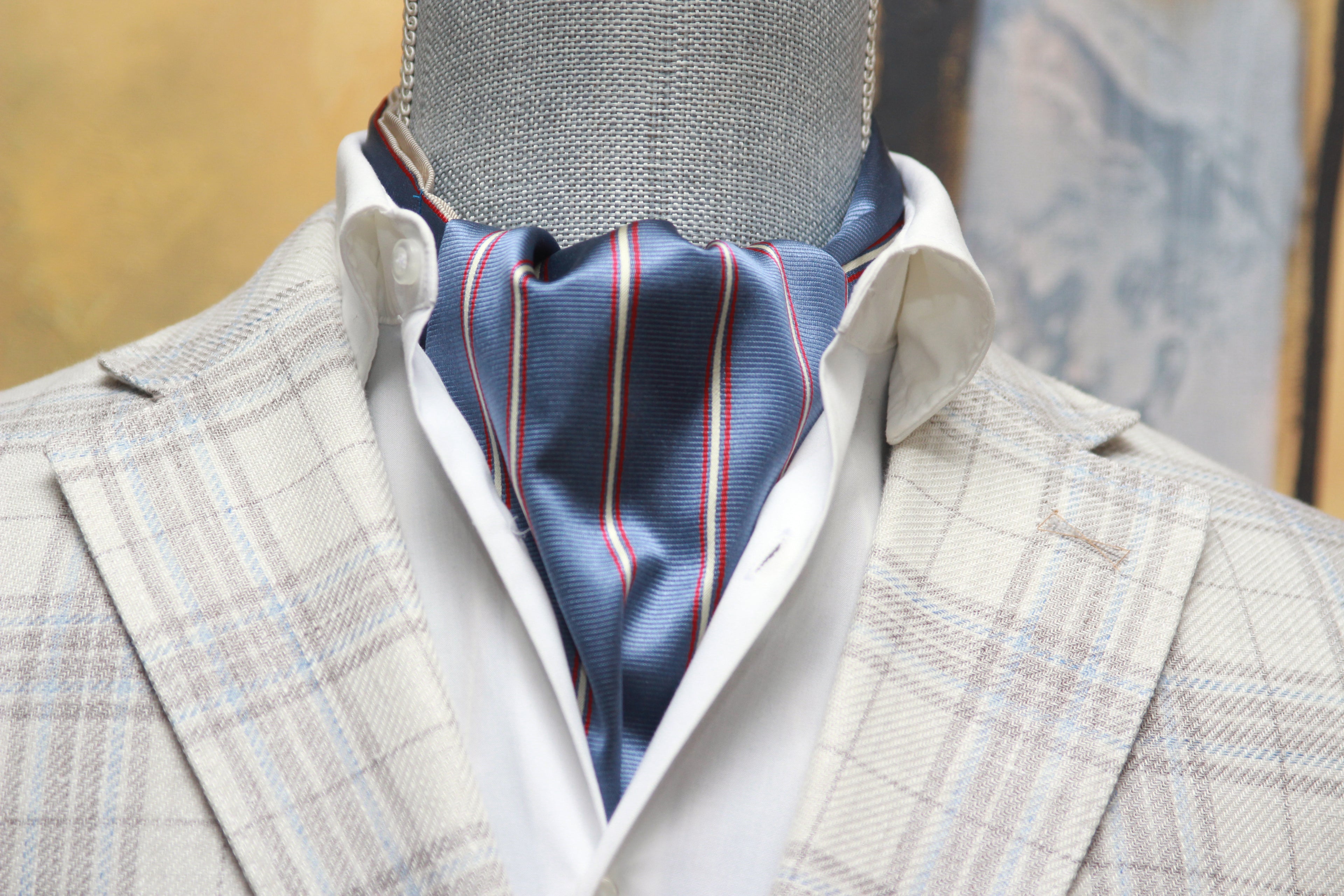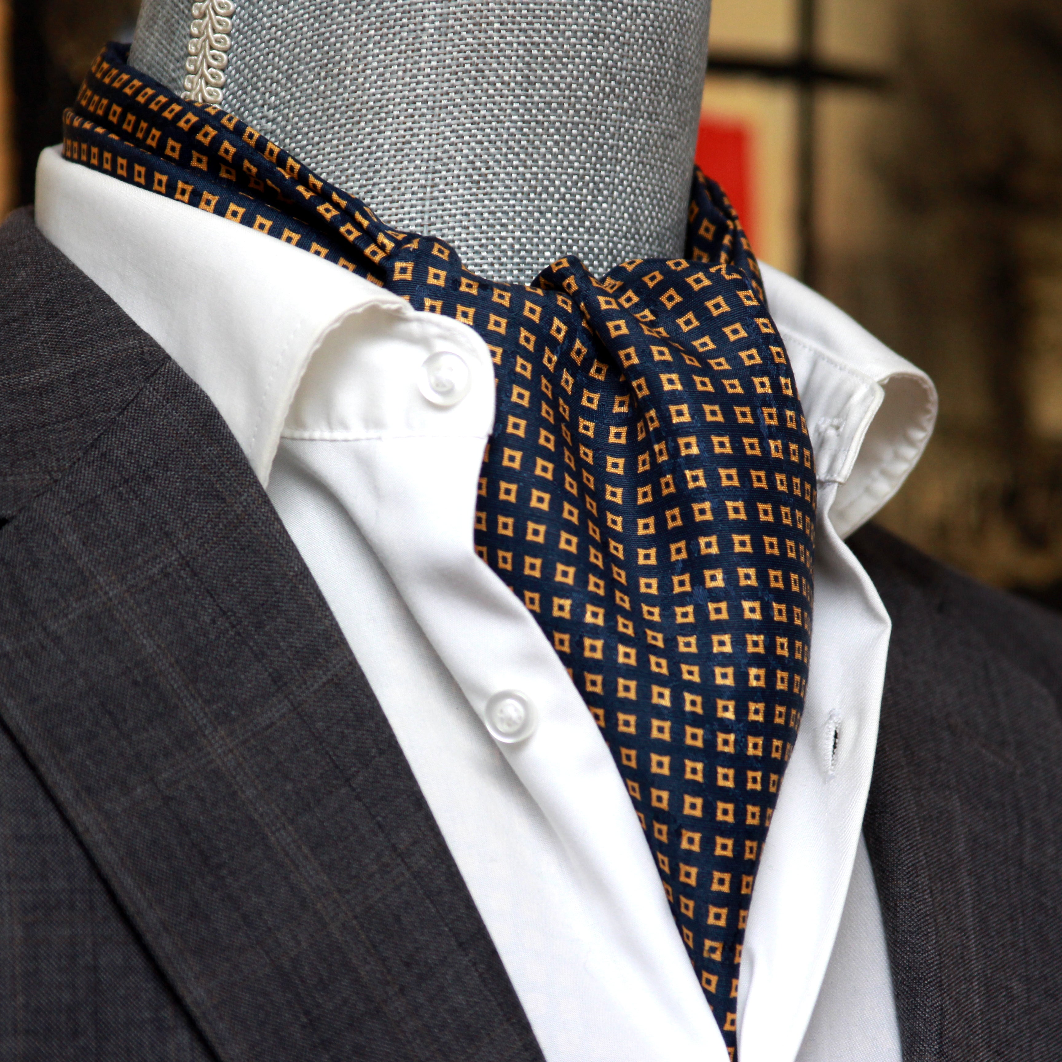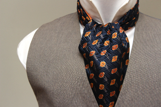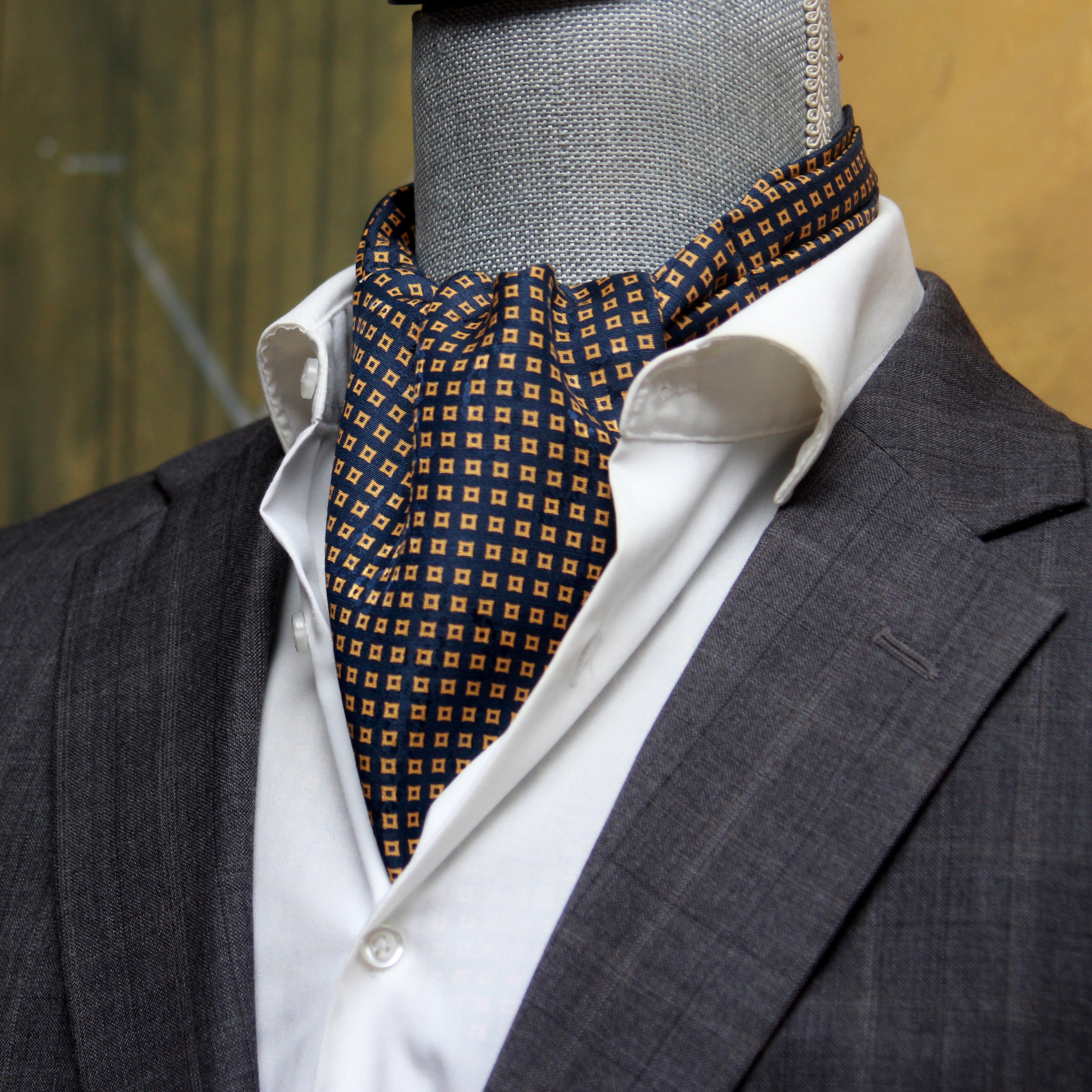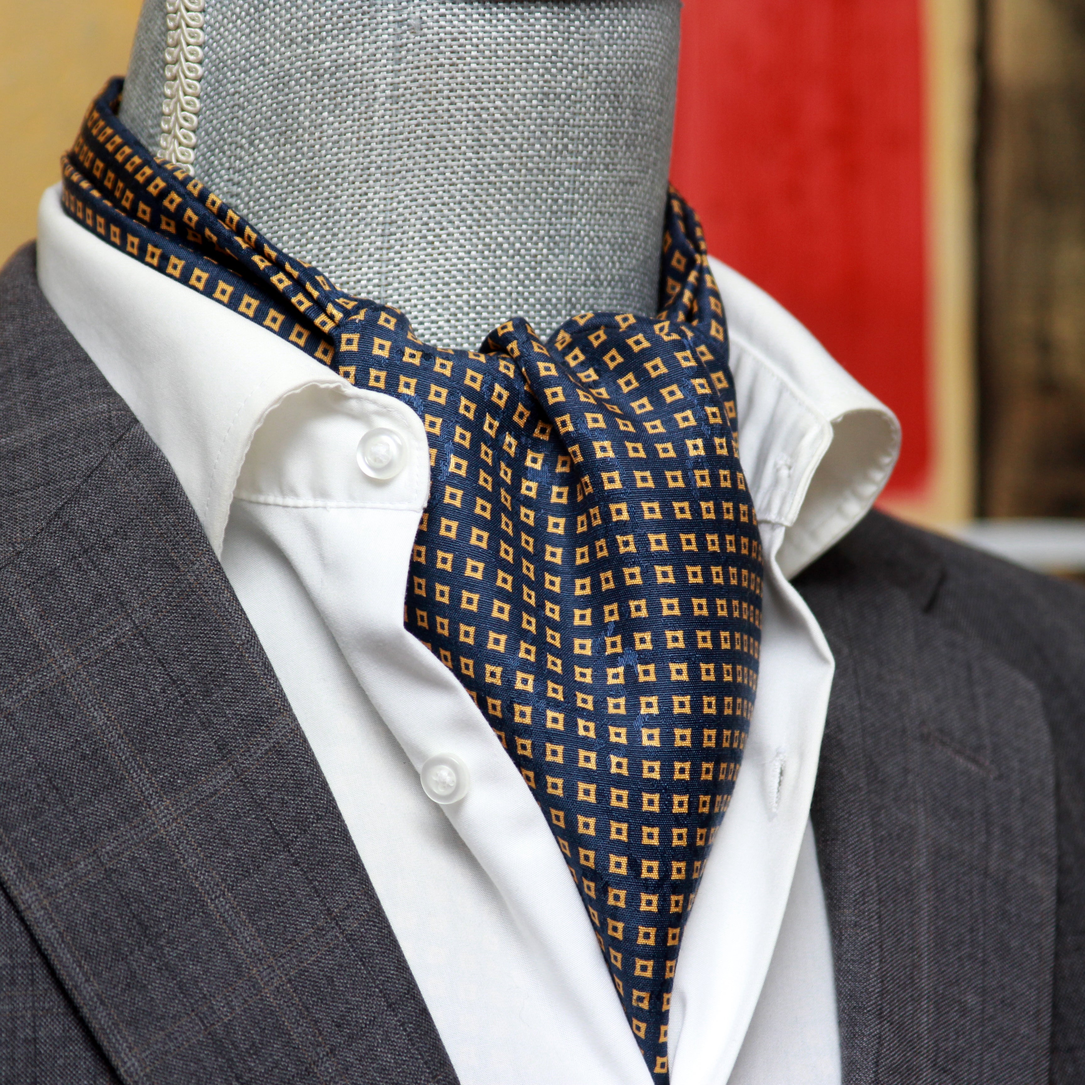 Men's Ascot Cravat LUXURY Blue Ornament Block Men's Ascot Cravat LUXURY Blue Ornament Block