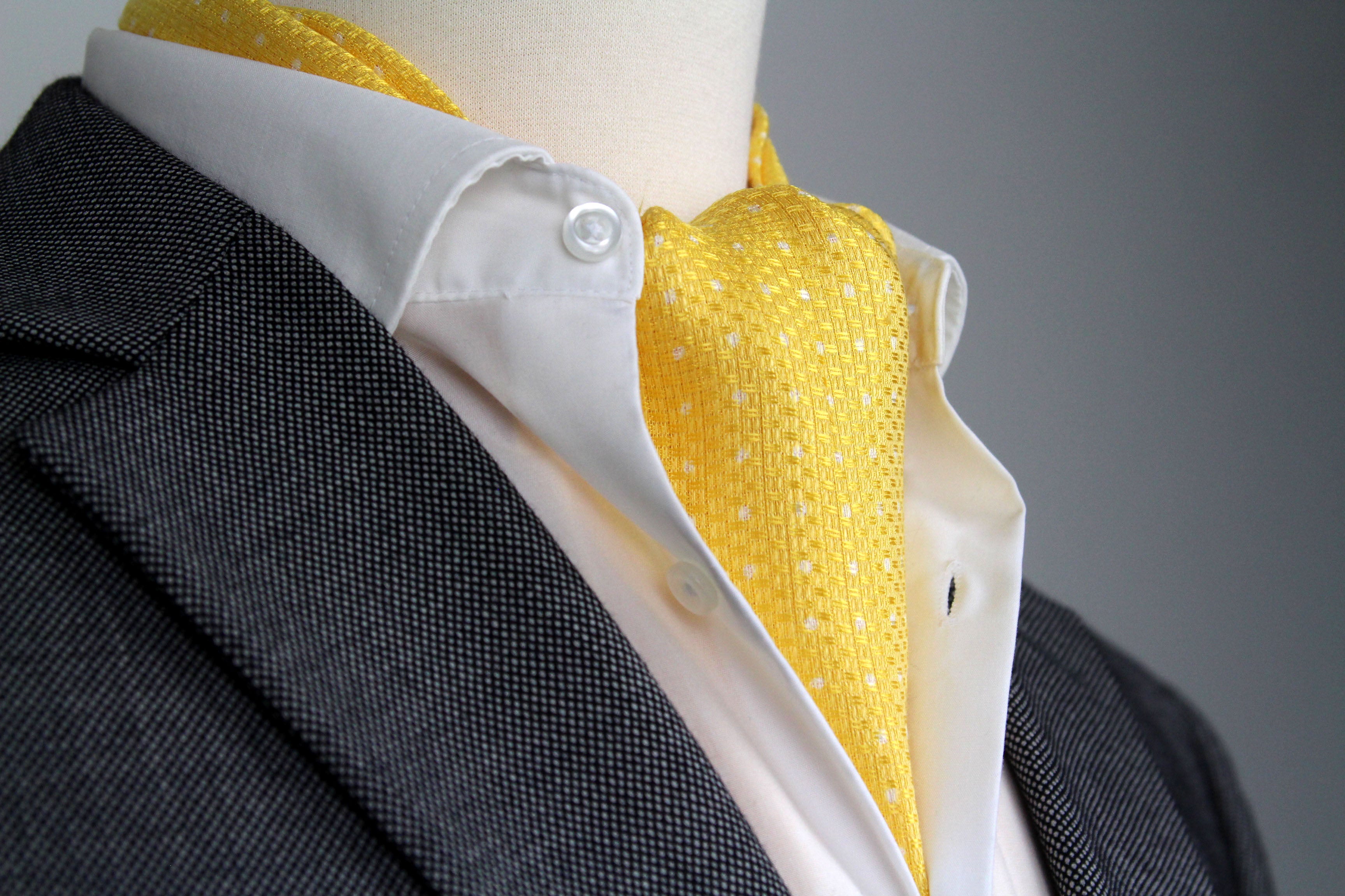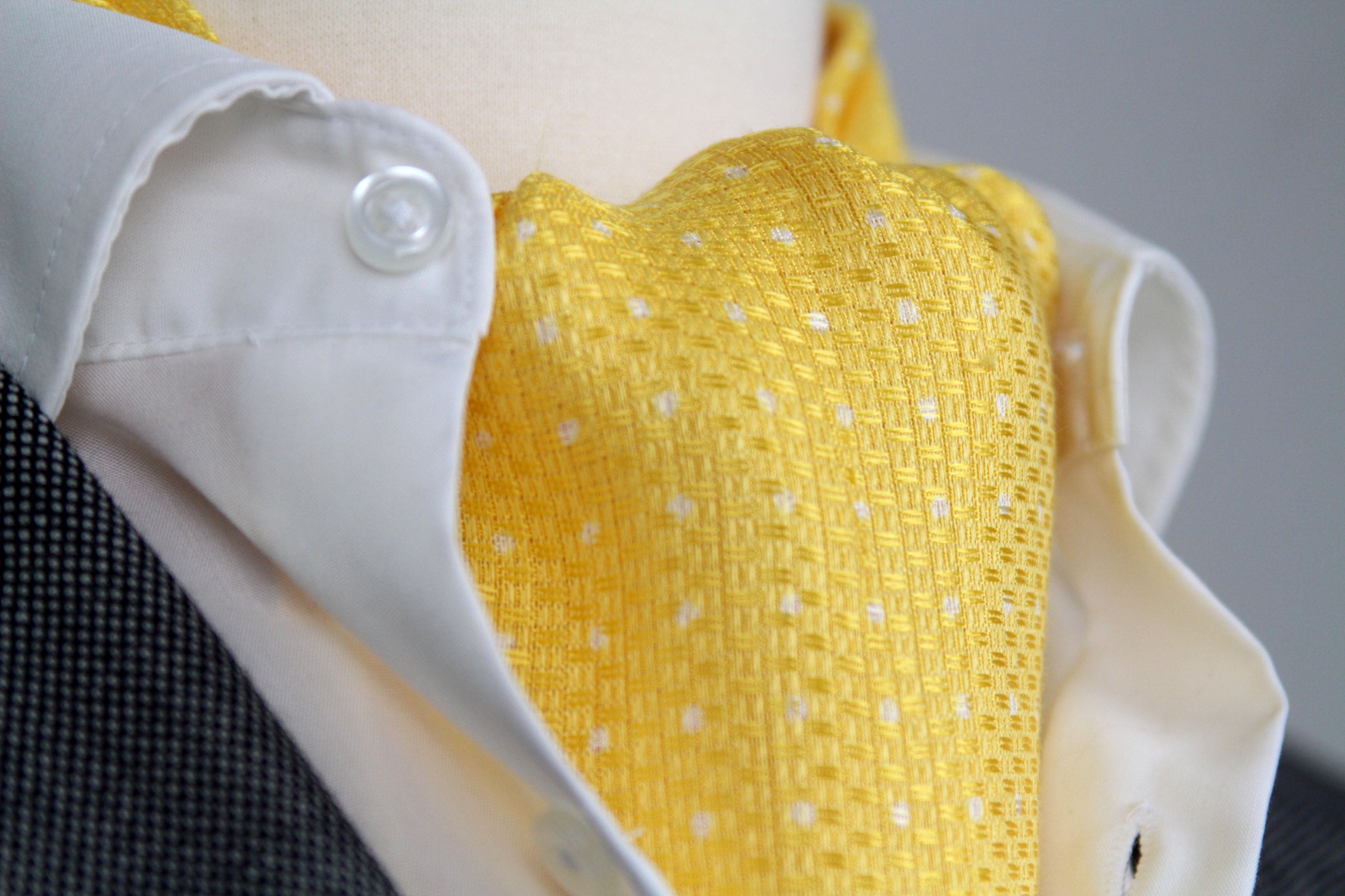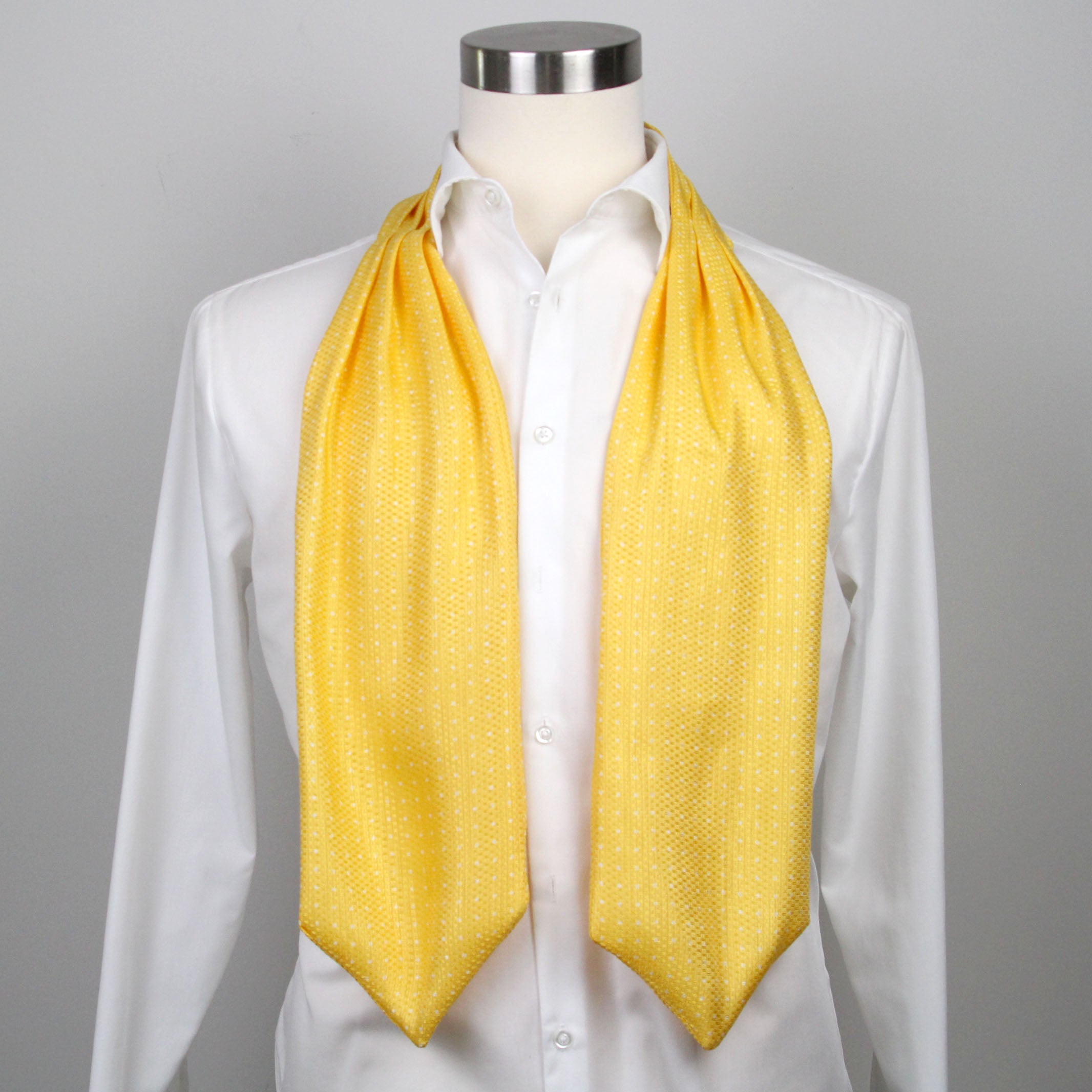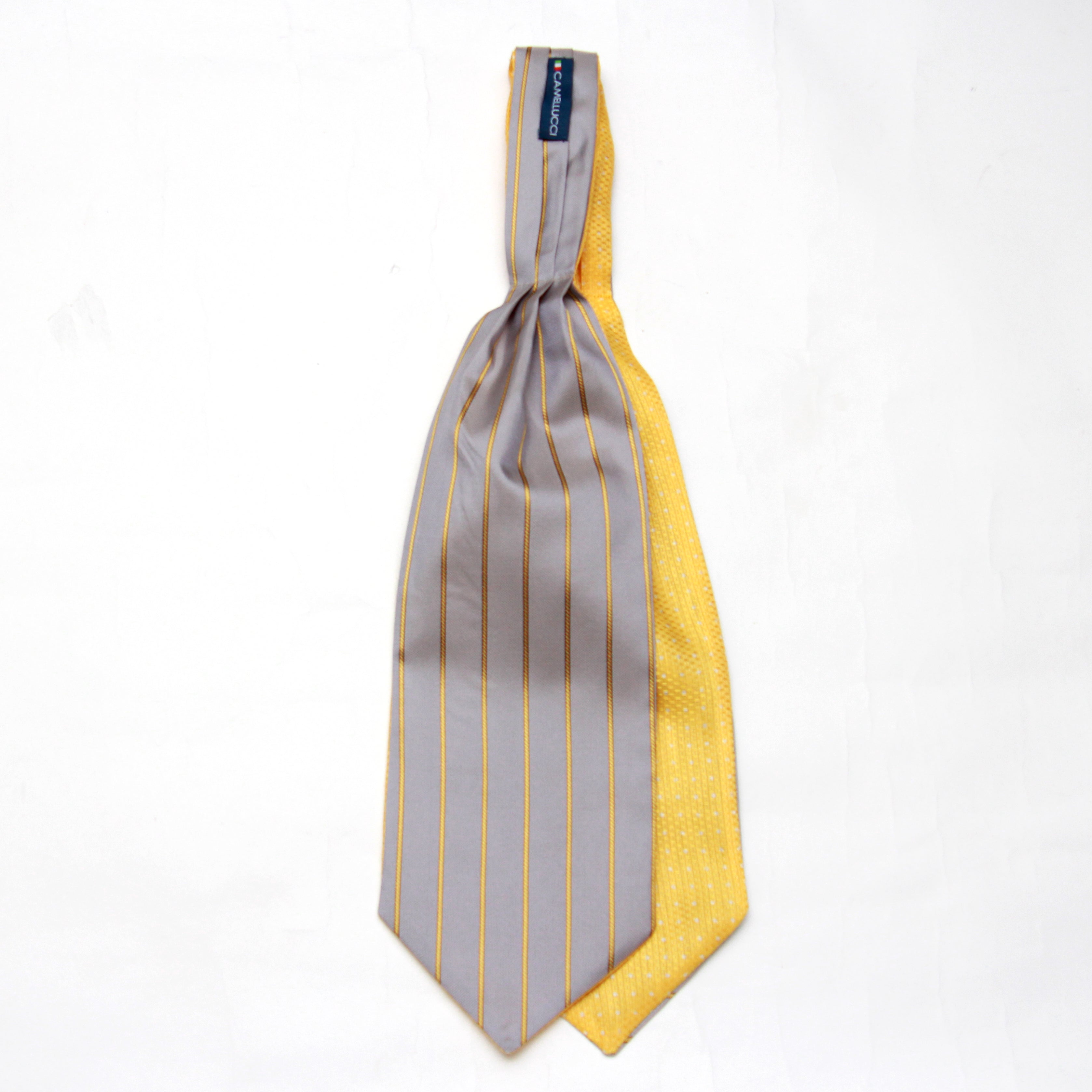 Yellow Stripe Solid Grey Reversible Woven Silk Ascot Yellow Stripe Solid Grey Reversible Woven Silk Ascot