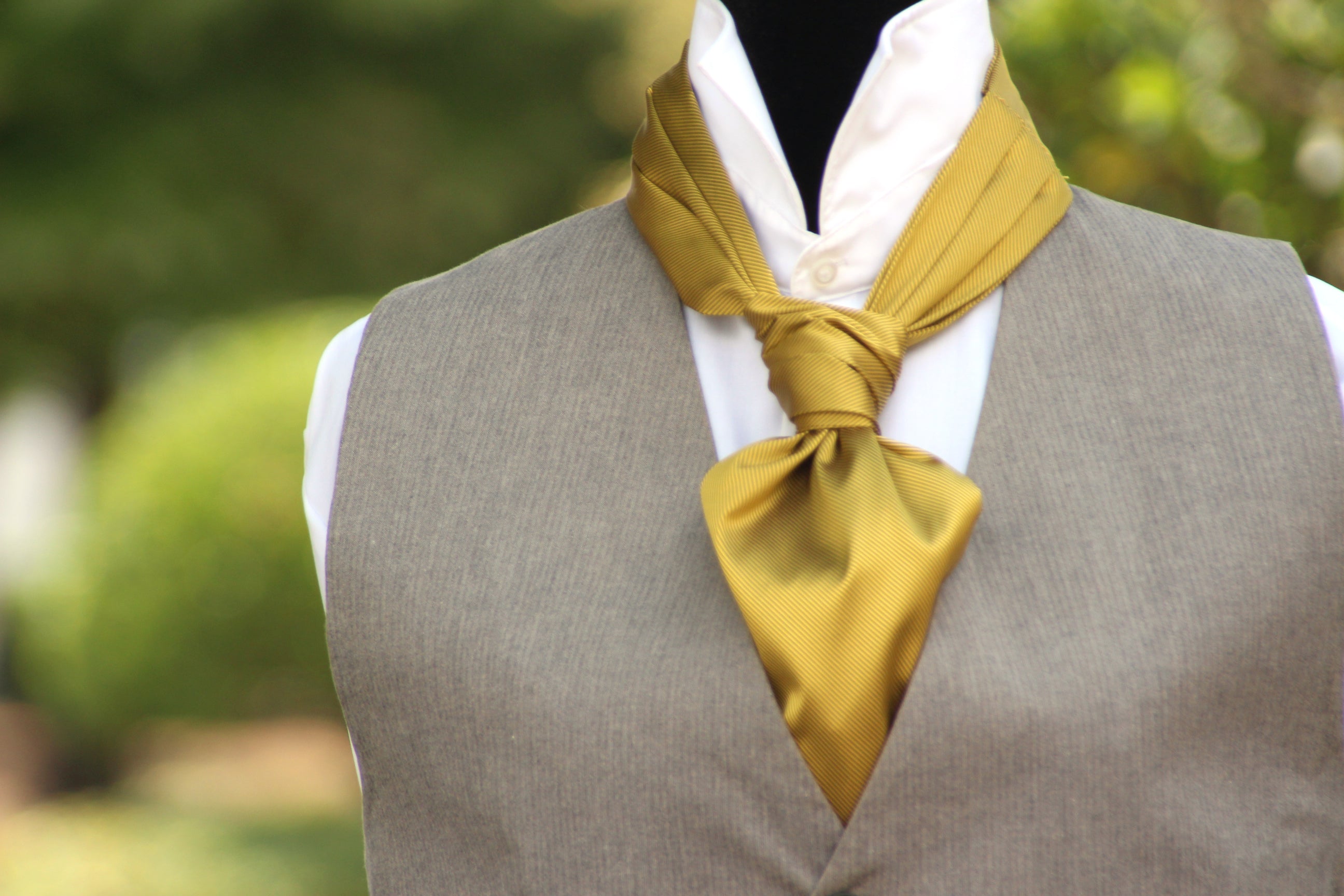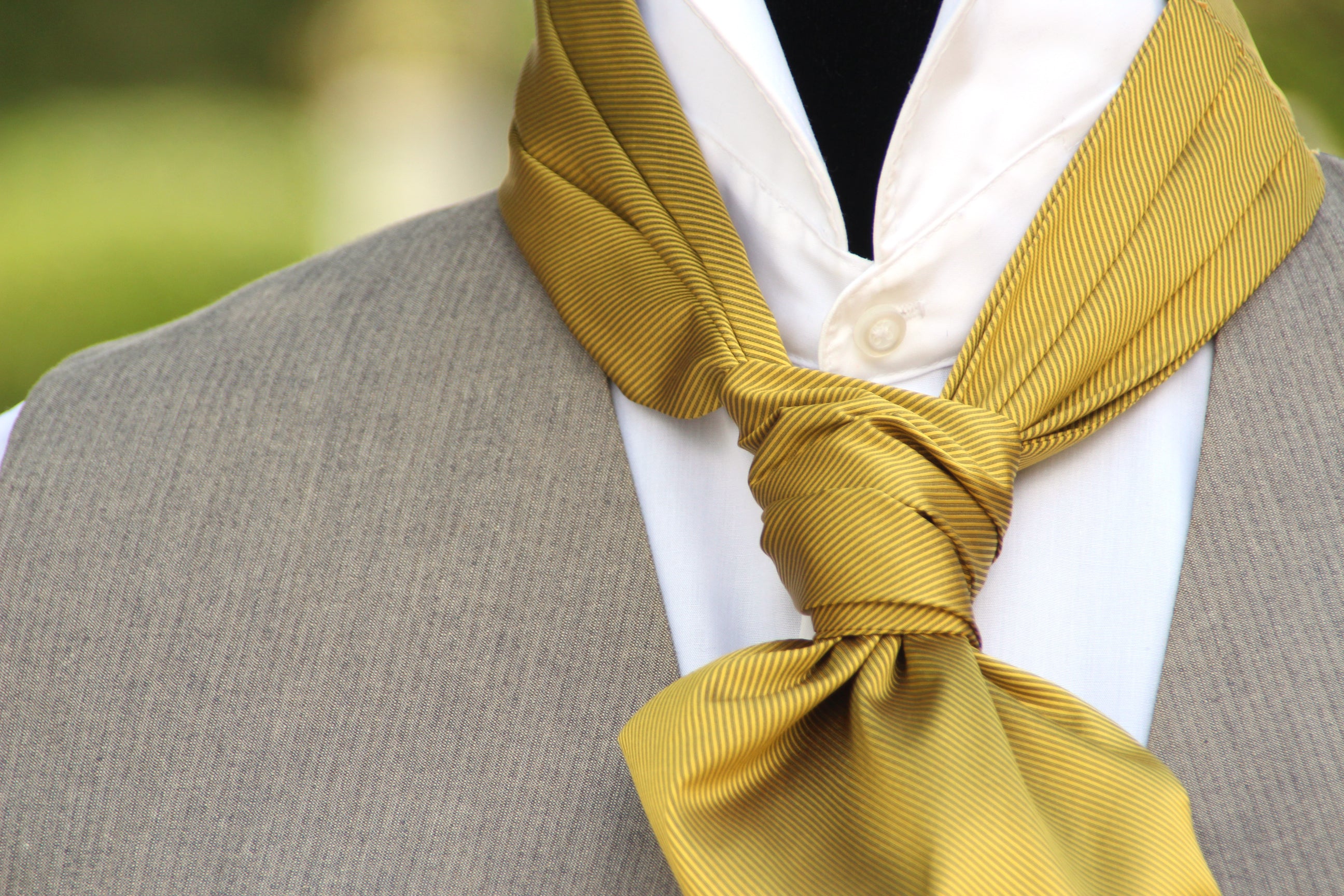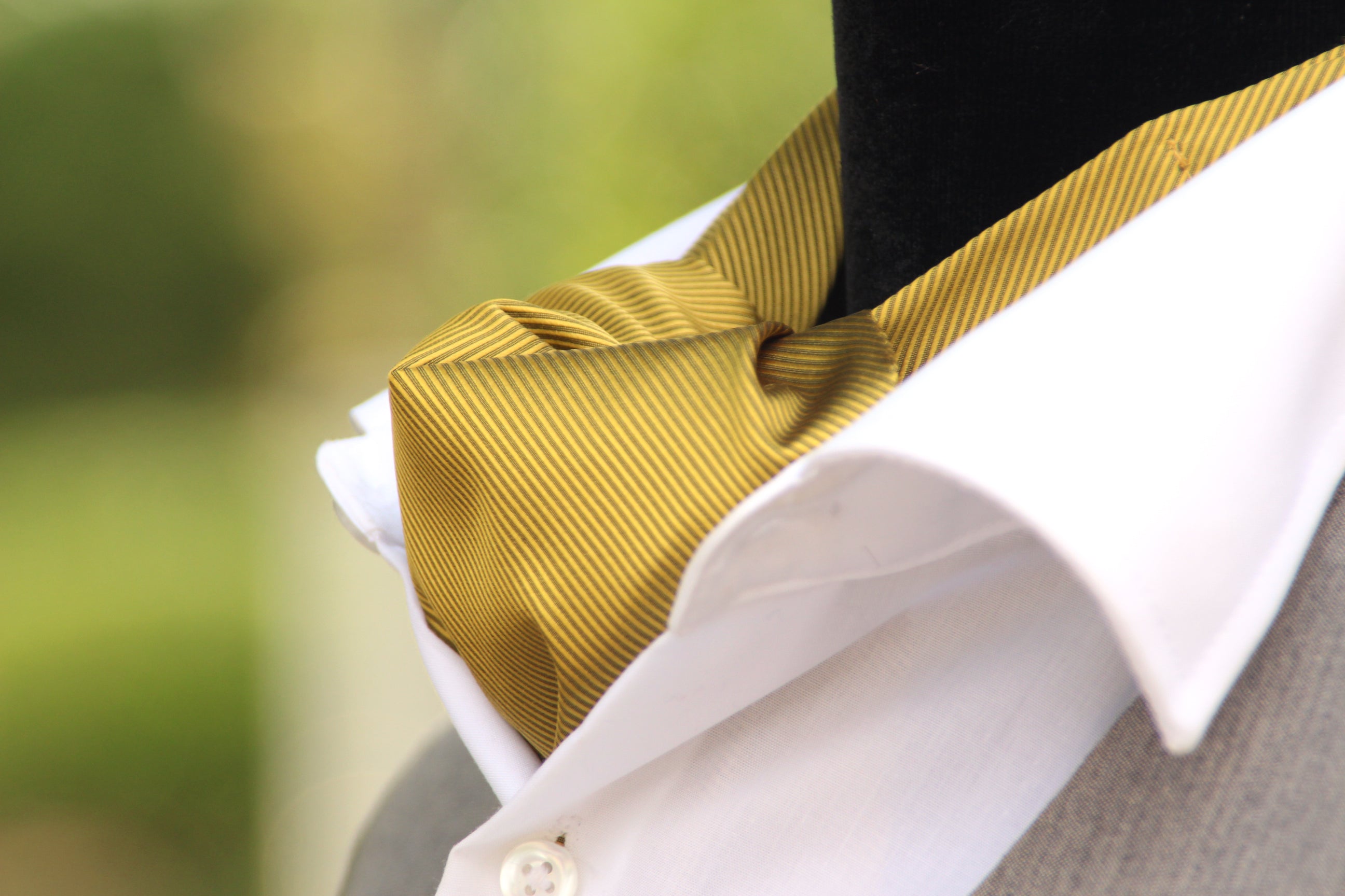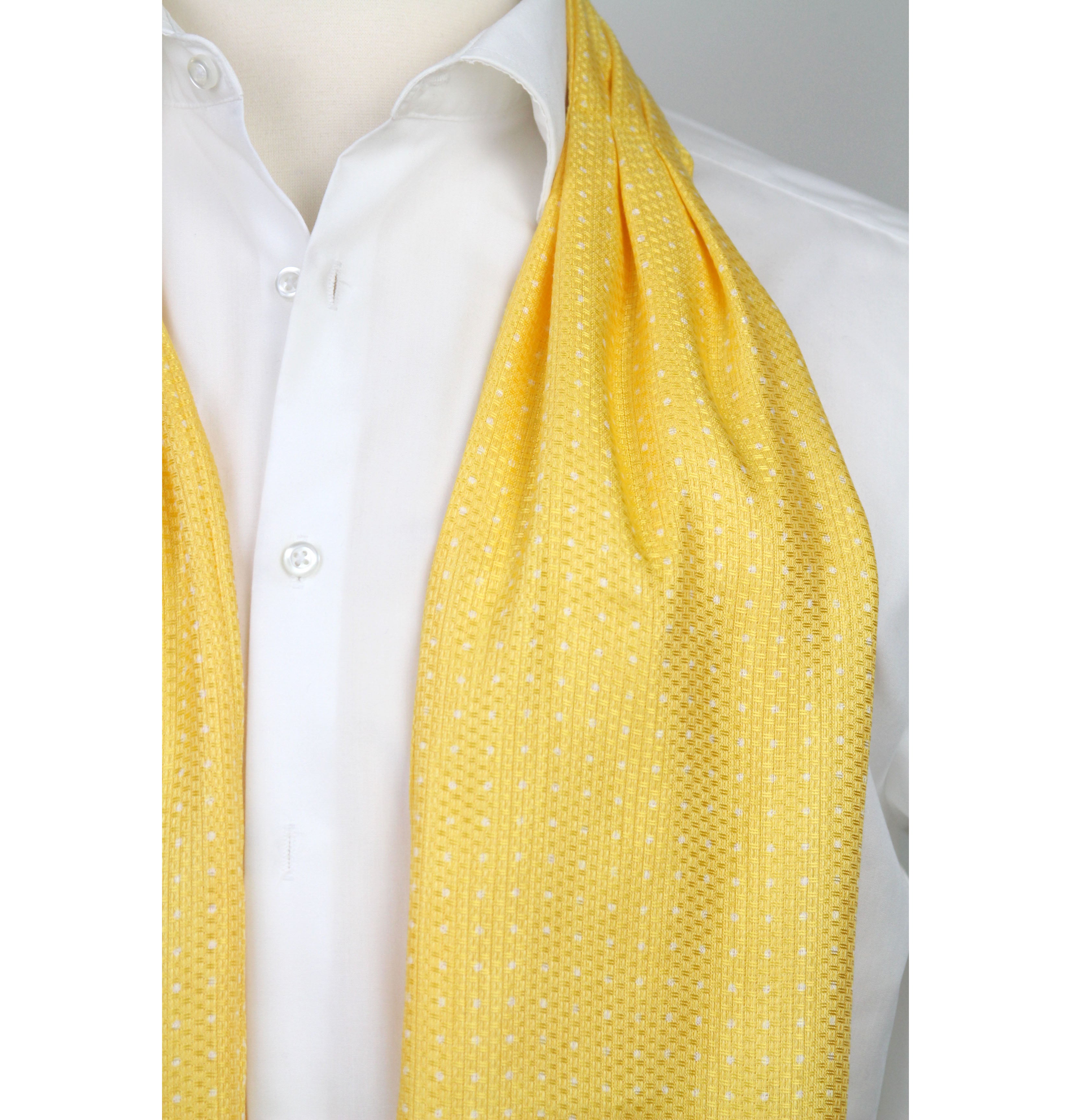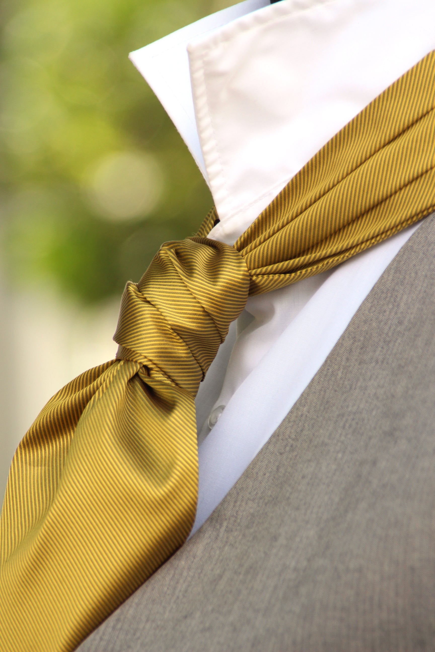 Yellow Stripe Solid Grey Reversible Woven Silk Ascot Yellow Stripe Solid Grey Reversible Woven Silk Ascot